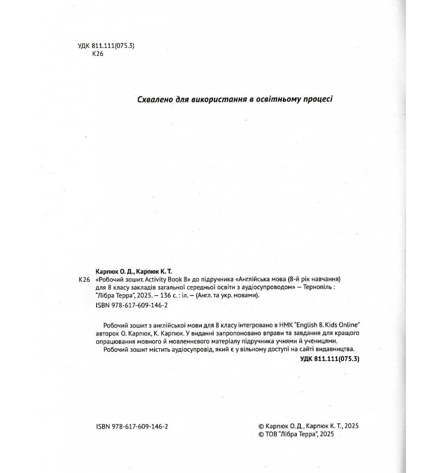 Тип товара | Рабочая тетрадь (Woorkbook) |