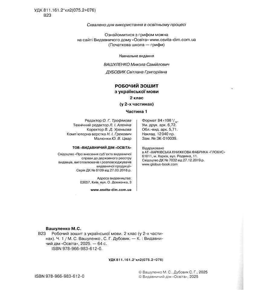 «НУШ Українська мова Робочий зошит 2 клас Зошит + уроки із розвитку зв'язного мовлення (Ч. 1)» автор Вашуленко издательства «Освіта» можно заказать на нашем сайте по телефонам: +380667181766 и +380737007088.