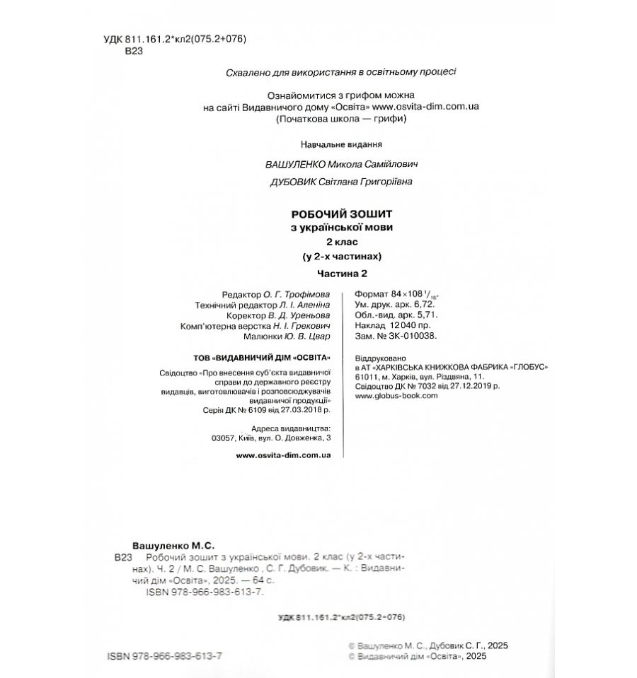 «НУШ Українська мова Робочий зошит 2 клас Зошит + уроки із розвитку зв'язного мовлення (Ч. 2)» автор Вашуленко издательства «Освіта» можно заказать на нашем сайте по телефонам: +380667181766 и +380737007088.