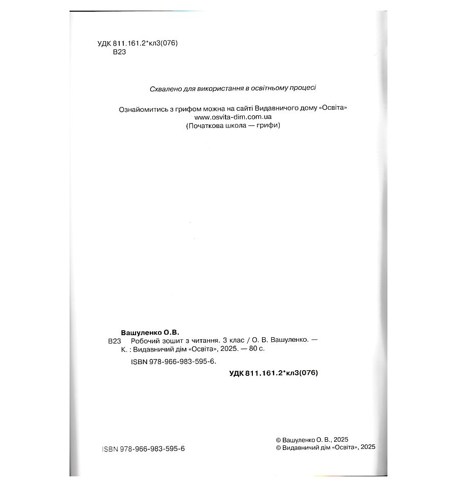 Рабочую тетрадь по чтению для 3 класса НУШ автор Вашуленко издательство «Освита» по программе новой украинской школы можно купить оптом