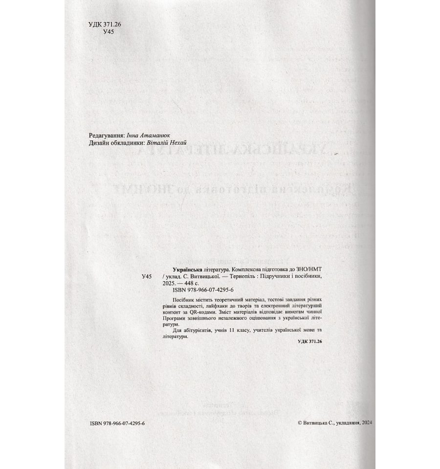 ЗНО 2026: Комплексне видання видання українська література автор Витвицька С. видавництво «Підручники і посібники» м. Тернопіль