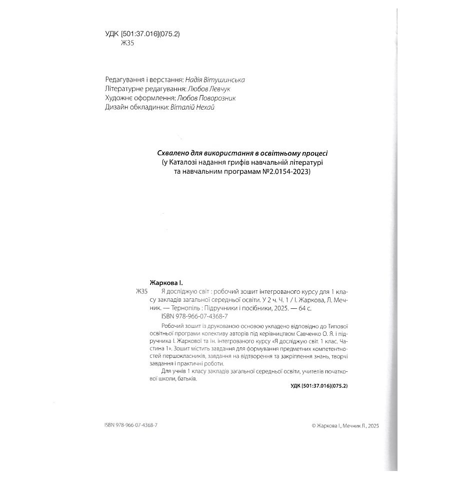 Я исследую мир рабочая тетрадь 1 класс (1 часть) авт. Жаркова, Мечнык издательство «Підручники і посібники». Можно купить по цене производителя