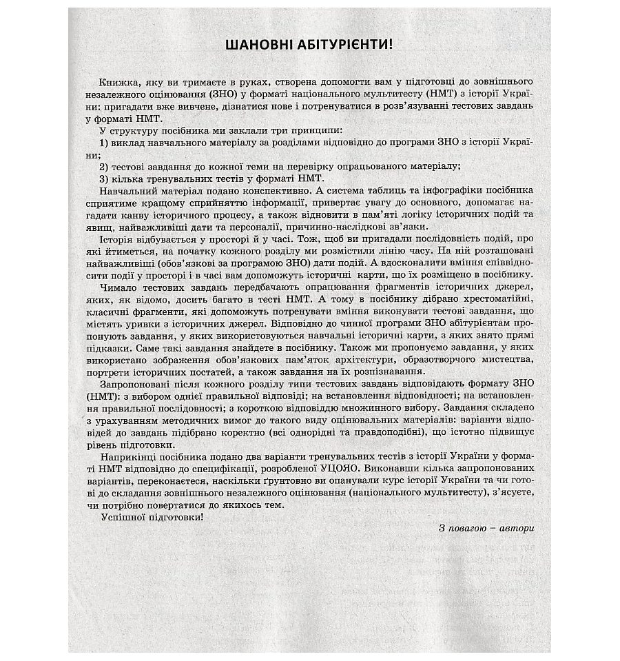 Увесь зміст комплексного видання з історії України старанно підібраний і продуманий справжнім фахівцем із тим, щоб максимально підготувати абітурієнтів до серйозного випробування.