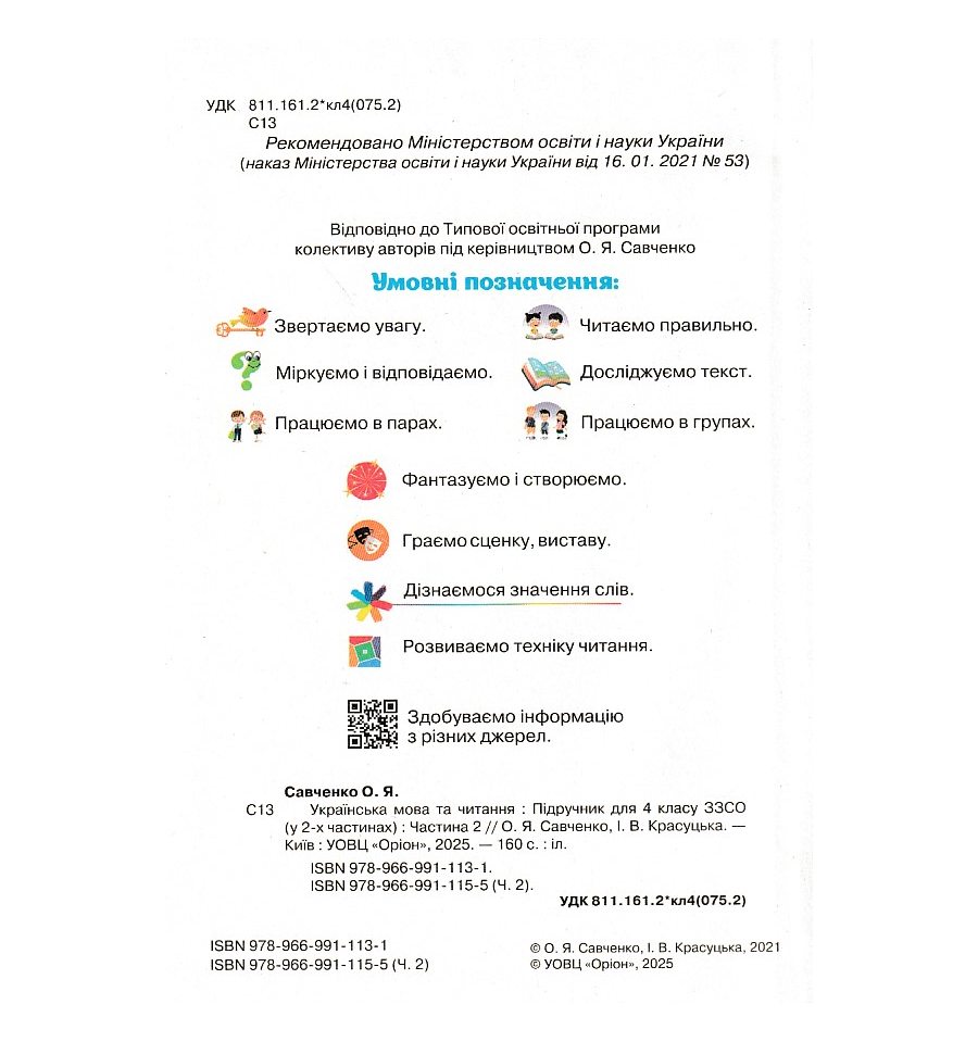 Підручник з української мови та читання для 4 класу НУШ (частина 2) автор Савченко О. видавництво «Оріон» можна купити за ціною виробника