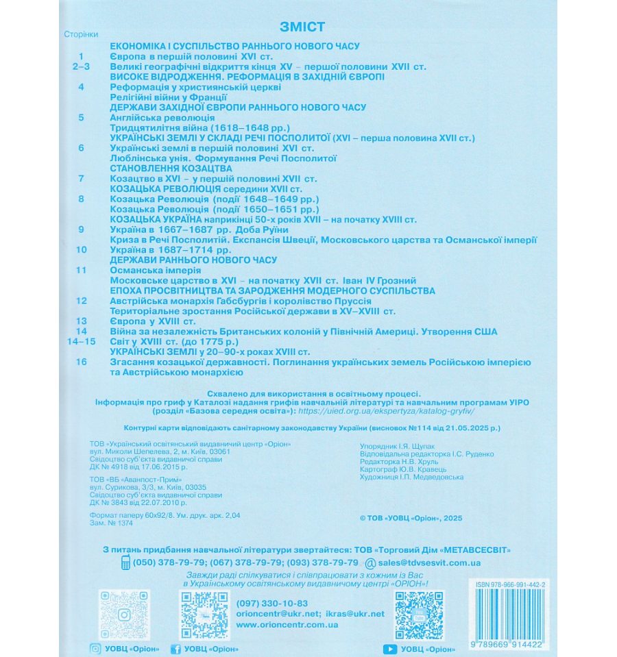 Контурні карти "Всесвітня історія. Історія України (інтегрований курс)" для 8 класу НУШ автор Щупак І.Я. видавництво "Оріон"
