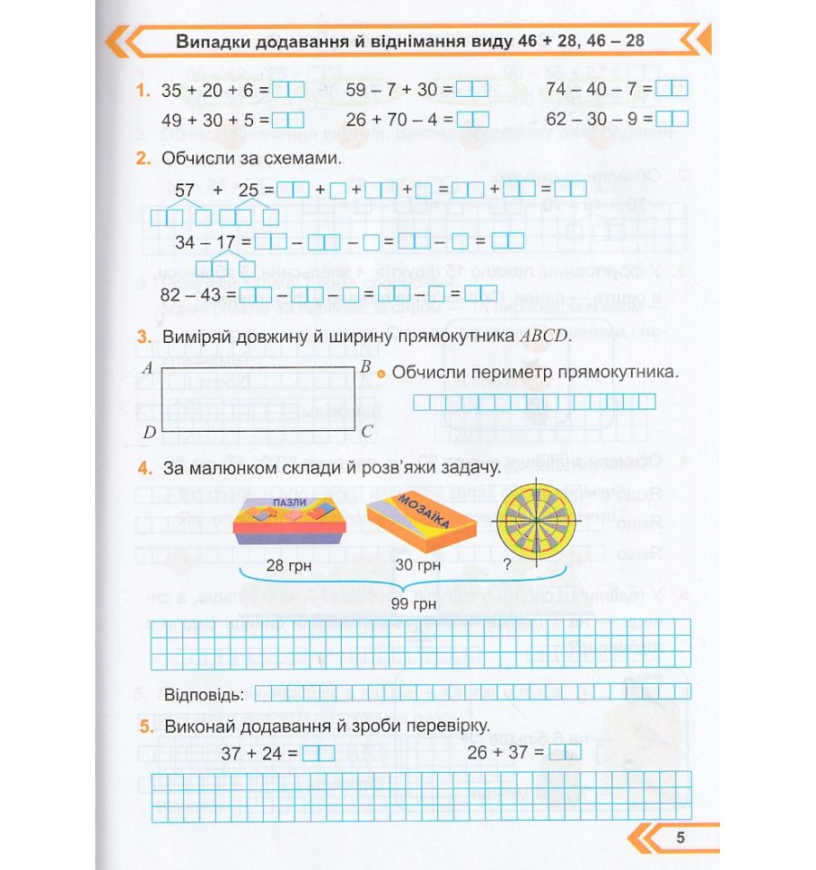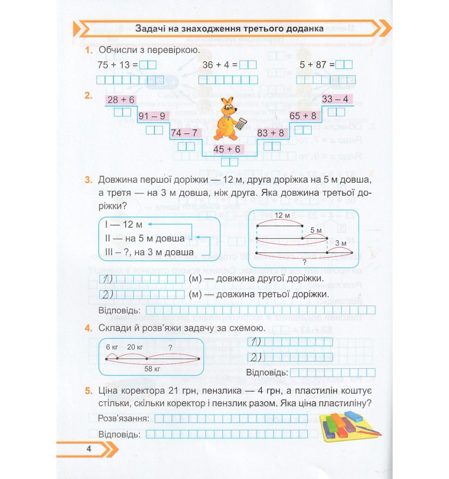 Друга частина зошиту на друкованый основі до підручника Корчевська, Козак "Математика 2 клас".