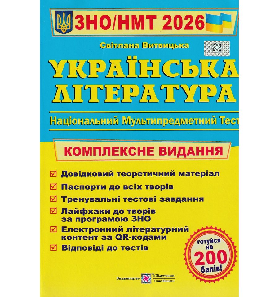Комплексне видання до ЗНО НМТ 2026 з української літератури автор Витвицька Світлана видавництва «Підручники і посібники» міста Тернопіль може запропонувати випускникам 2026 року ґрунтовну підготовку з даного предмета, яка складає наступне: